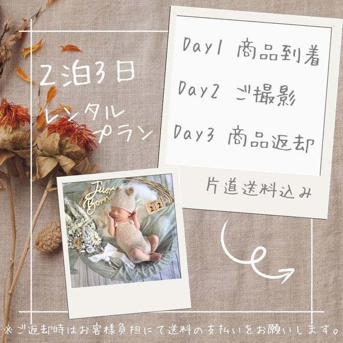 ①購入時に「種類」からご希望のレンタル日をご選択頂き購入下さい。ご希望の日付がない場合はLine ID: @622ahhnyからお知らせください^^