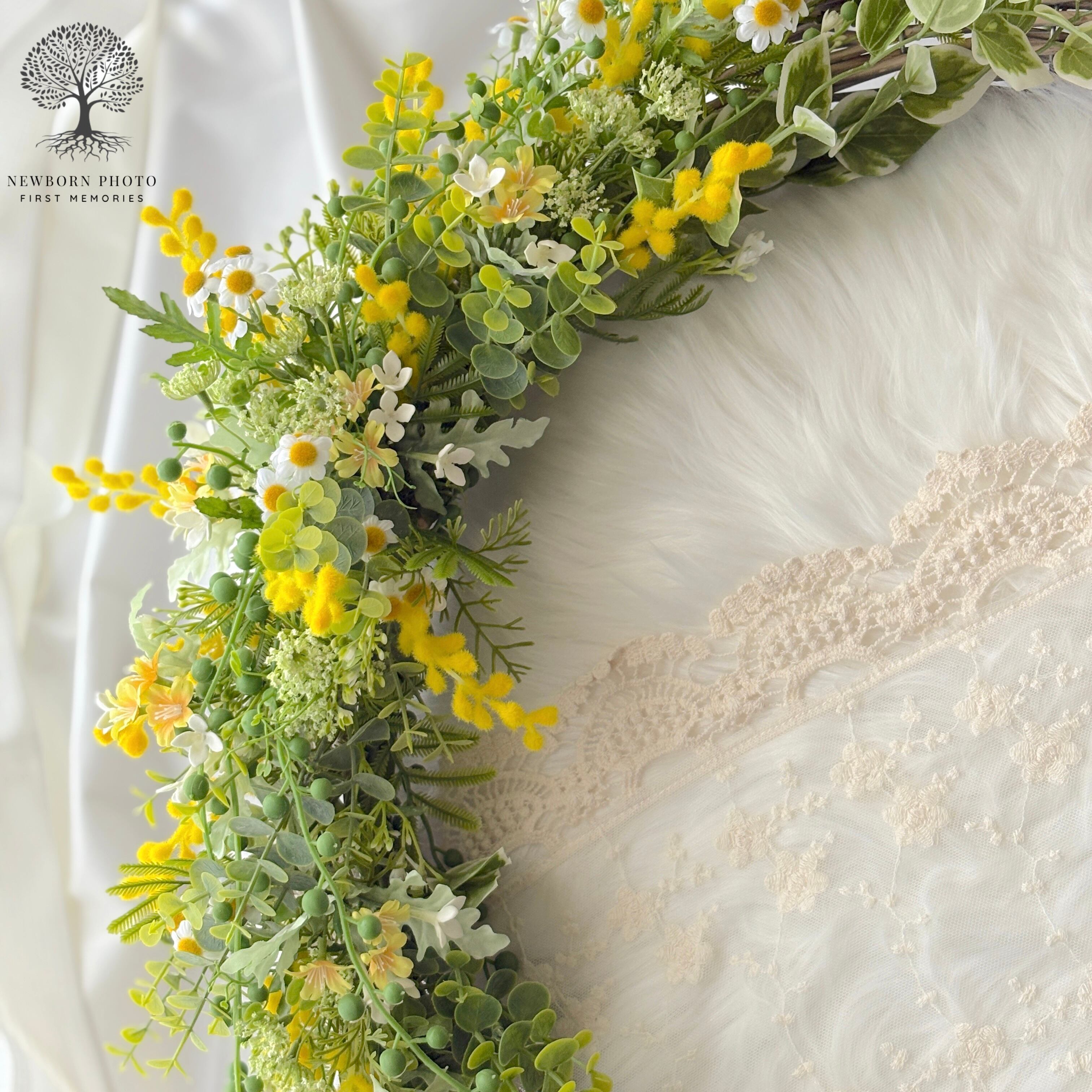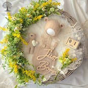 ◎春生まれににぴったり!やわらかな春色に包まれるミモザのニューボーンフォト。