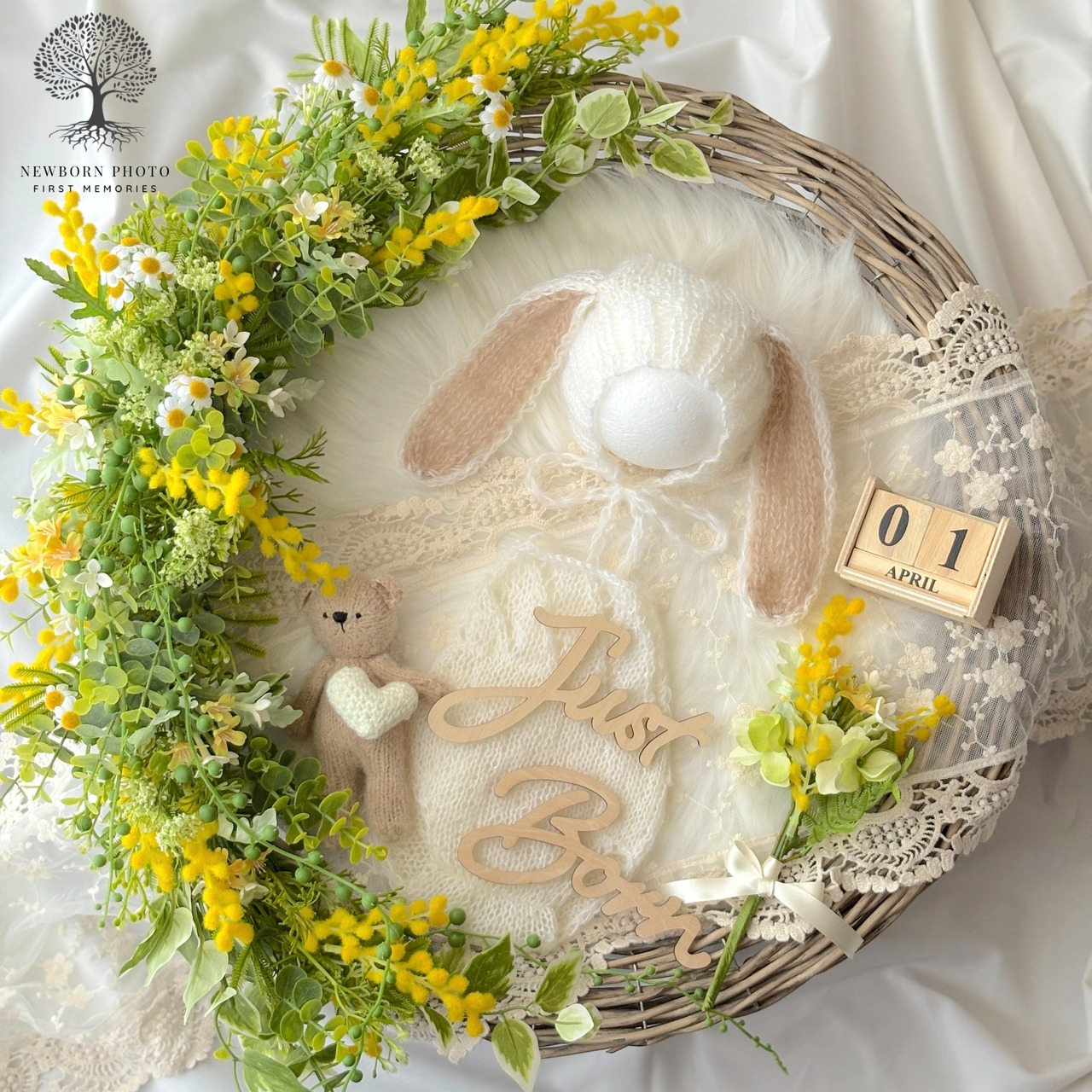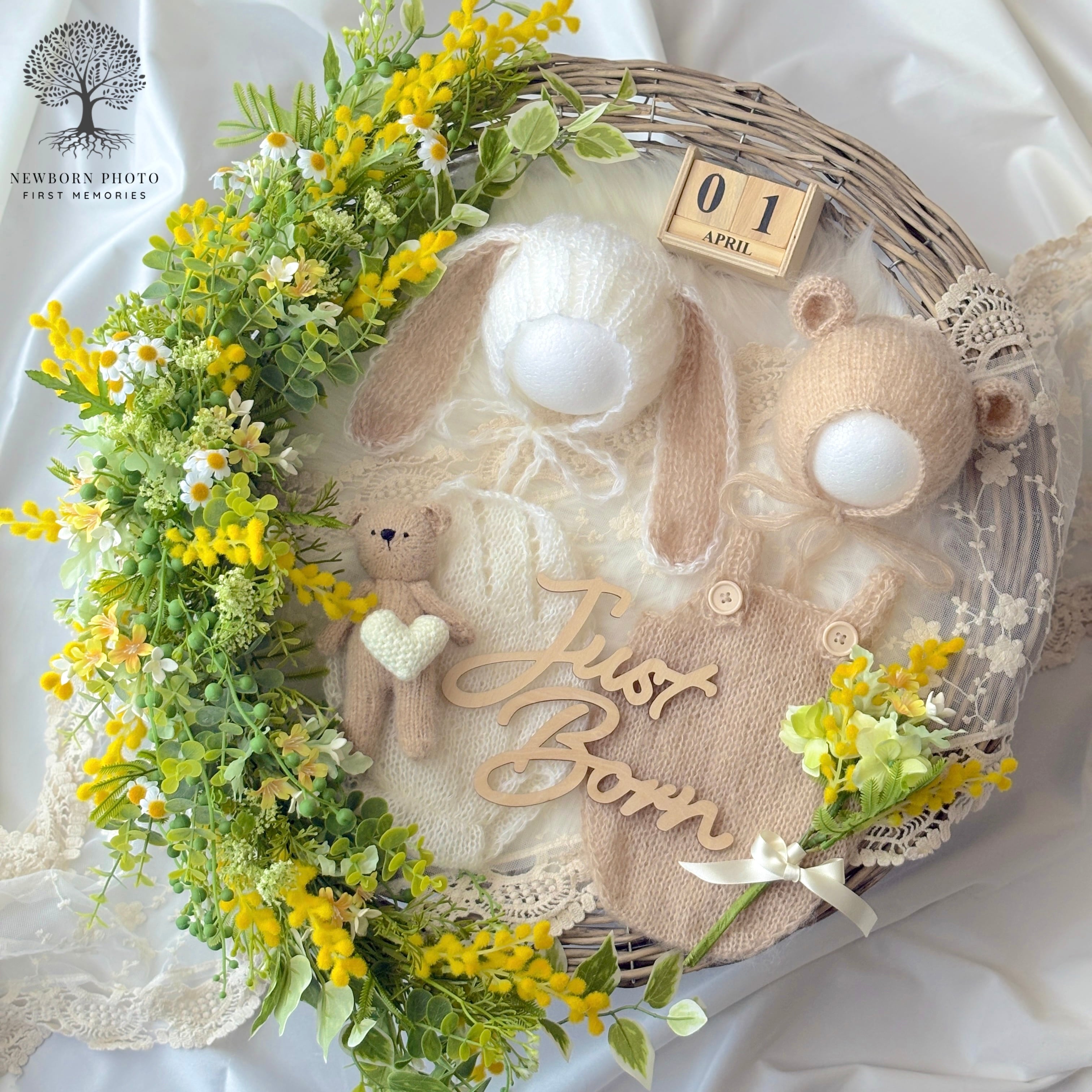 春の訪れミモザセット 片道送料込み ニューボーンフォトレンタル くまとうさぎの衣装